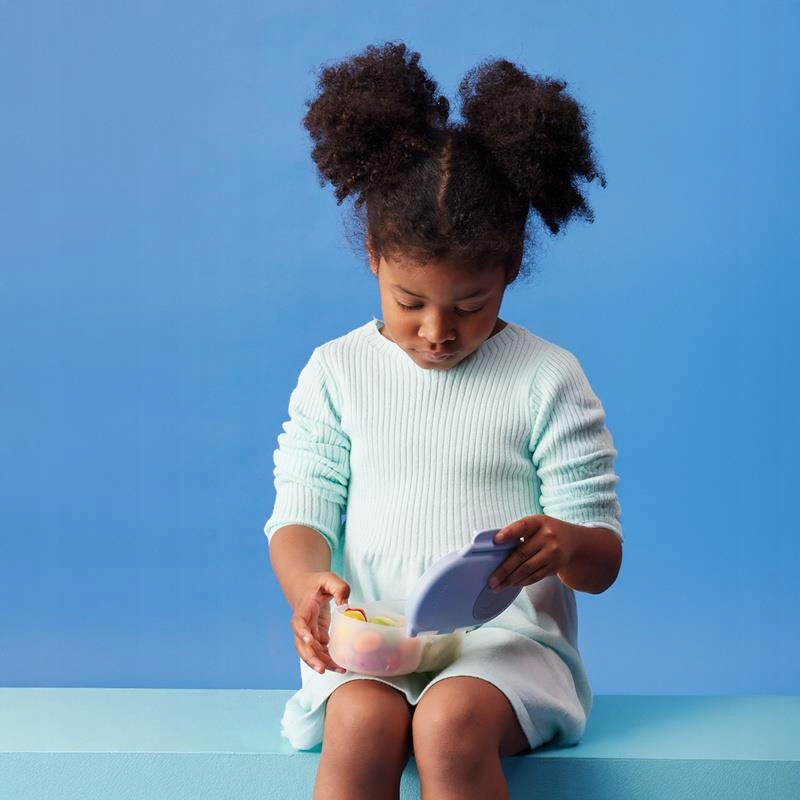Універсальний контейнер для закусок з гнучкою прокладкою, яка дозволяє приховати цілі фрукти, такі як яблуко. Перегородки тісні і їх можна використовувати для пюре, йогурту та занурень.