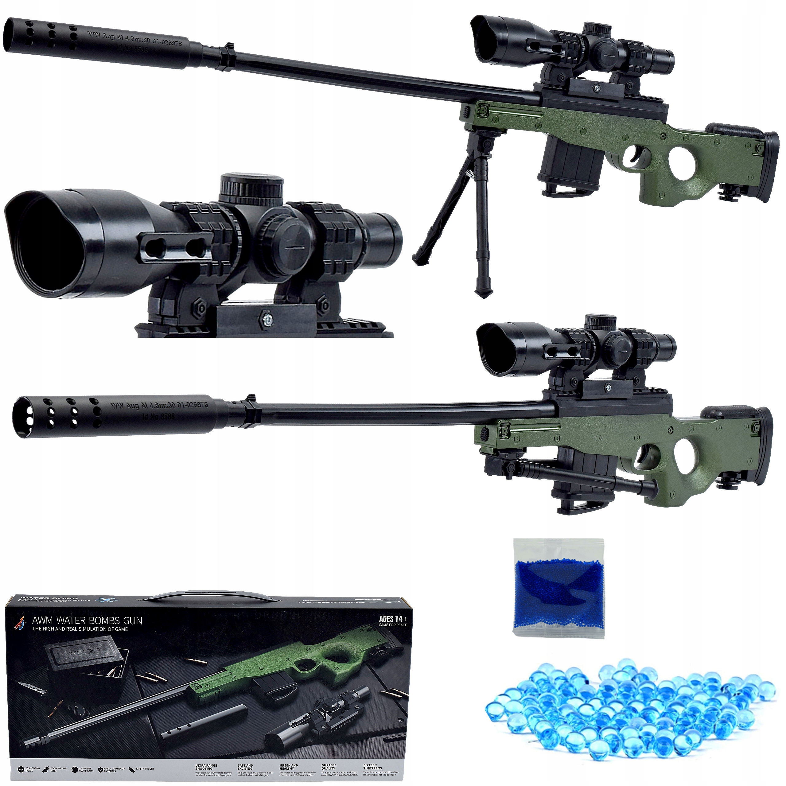 - Зброя виготовлена з міцного ABS-пластику, який стійкий до вм'ятин, потертостей і подряпин, що дозволяє зберігати рушницю в ідеальному візуальному стані
