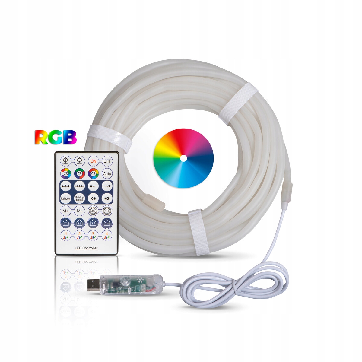Стійкість використаних матеріалів гарантує, що світлодіодна стрічка з функцією RGB прослужить вам безвідмовно протягом тривалого часу. Кабель стійкий до пошкоджень на рівні IP54, а сама вилка і пульт дистанційного керування - IP20.