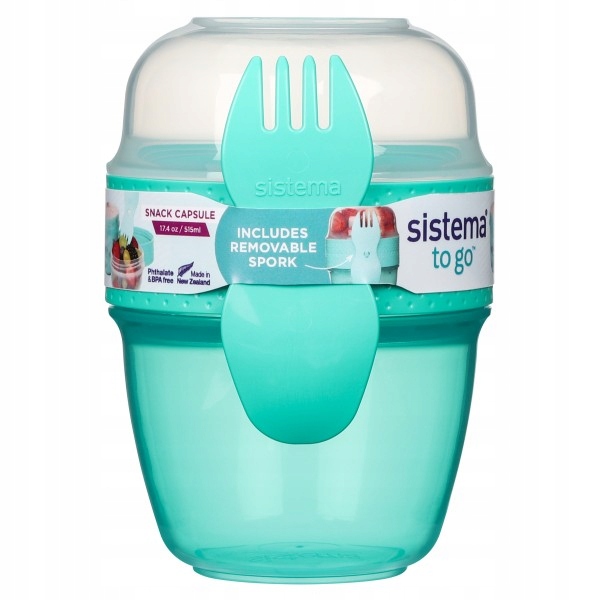 - A зручний контейнер, в який можна упакувати смачну закуску, десерт або другий сніданок. Ідеальний набір для фруктів з сиром і салату з соусом. Він складається з двох частин, з’єднаних одна з одною продуманою кришкою, що відкручується, що розділяє вміст контейнерів. Прикріплена до ємності ложка-вилка дозволяє їсти готову страву поза домом. Контейнер виготовлений із твердого матеріалу, що не містить BPA та фталатів.