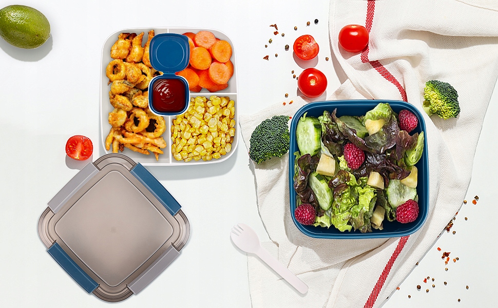 - Обідня коробка виготовлена з найвищої якості матеріалів, безпечних для їжі. Приготуйте страви на 100% BPA без BPA, вінілу, свинцю та контейнера з ПВХ. Більше того, безпечно нагріватися в мікрохвильовці та легко чистити в посудомийній машині! Він піклується про навколишнє середовище завдяки його повторному корисності.