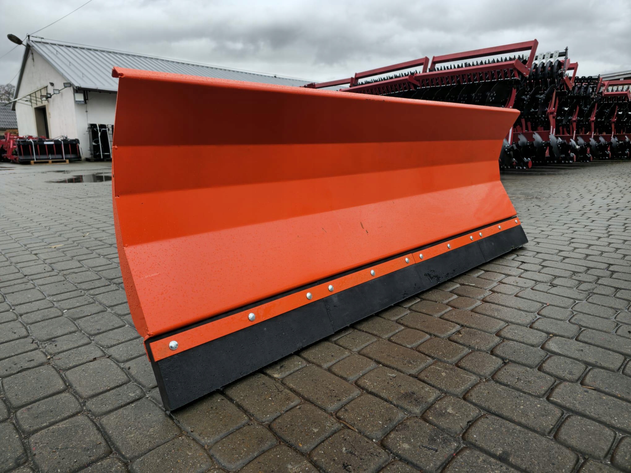 Плуги нові, міцно виготовлені (4 -мм листовий металевий лезо, 40 мм гума). Розділене гумове лезо (воно дозволяє легко замінити використаний шматок гуми / 0,5 м кожен, не потрібно замінювати гуму по всій довжині). Щит має вертикальні підкріплення, завдяки якому він стійкий до пошкодження. Плуг автоматично адаптується до землі.