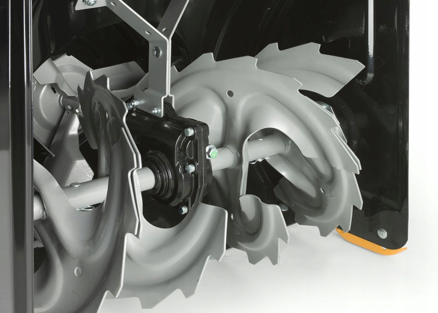 Спеціально розроблена різальна система з робочою шириною до 56 см проштовхує сніг в корпус, а потім викидає його через витяжну трубу на відстань до 10 м. Фреза виготовлена з армованої міцної сталі - сніг і лід подрібнюються лопатями шнека перед тим, як потрапити в ротор. Цей розроблений 2-ступеневий робочий пристрій ідеально підходить і абсолютно безпечний для бетонних поверхонь, таких як тротуари, доріжки з бруківки тощо. Суцільна гвинтова подача дозволяє працювати як з мерзлим, так і з дуже мокрим снігом.