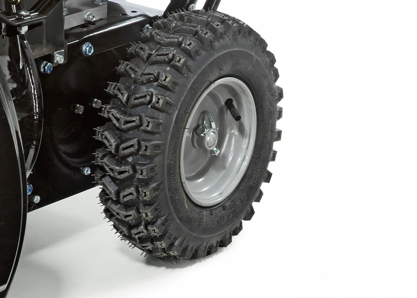 Представлений снігоочисник має 2 великих прогумованих ведучих колеса, що полегшує керування машиною в будь-яких умовах - переконайтеся самі в надзвичайному комфорті роботи з приводом 5 вперед передач. Можливість роботи на двох передачах заднього ходу полегшує вилучення пристрою, якщо він застрягне або застрягне.