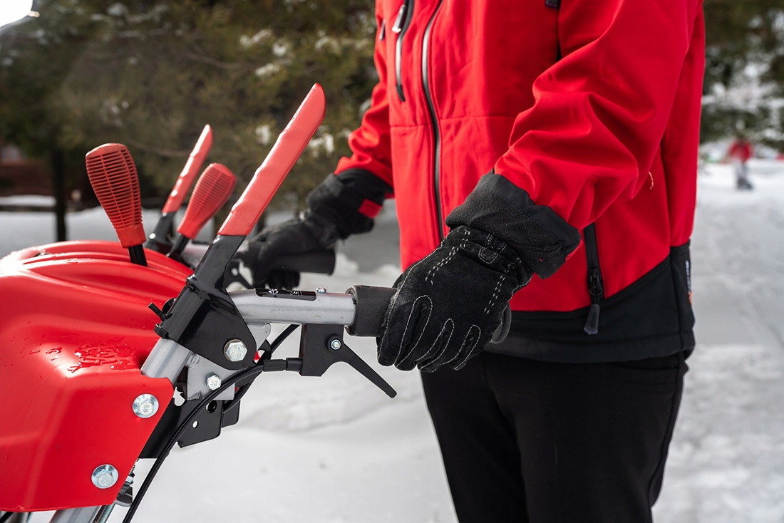 - Важіль регулювання жолоба викиду, встановлений на ручці - регулювання без необхідності нахилятися