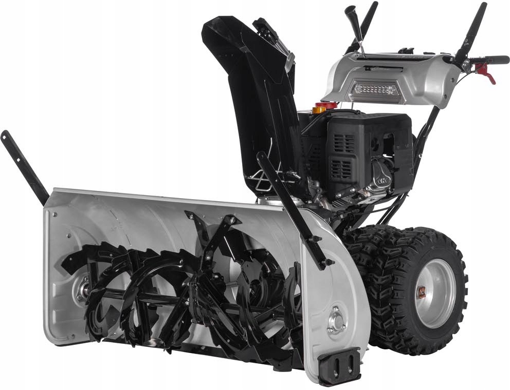 Потужний двигун гарантує достатню потужність при економних експлуатаційних витратах. Спеціальний протектор зимової гуми в поєднанні з приводом 16-дюймових коліс і регульованими бічними лижами забезпечують легку і плавну роботу снігоприбирача на розчищених снігом поверхнях. Двигун має датчик масла!