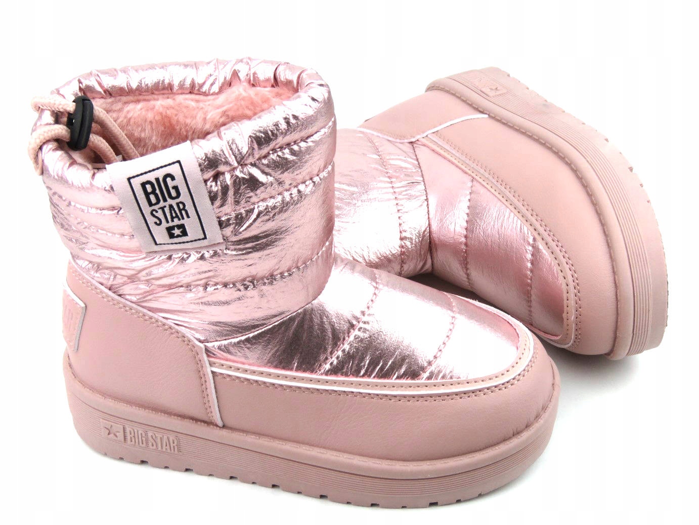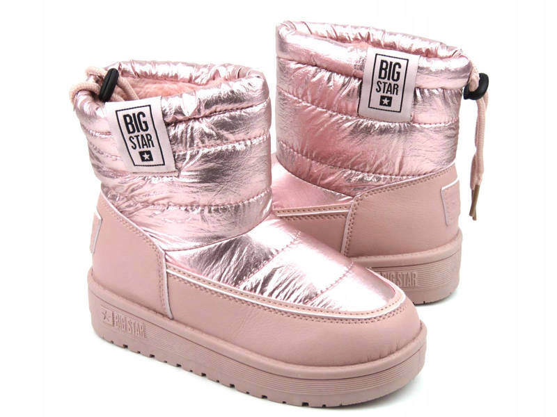 дитячі снігові черевики відомої марки Big Star були виготовлені з міцного матеріалу та рожевої екологічної шкіри. Інтер'єр був утеплений синтетичним хутром , що забезпечує захист від морозу та м'якості для ніг . Завдяки welt у теля взуття може бути ідеально пристосоване до ноги, так що сніг, дощ чи холод не потрапляють всередину взуття. Товста підошва характеризується опором і витривалістю , земля також добре прилипає і добре ізолює. Снігові черевики великої зірки теплі та легкі .