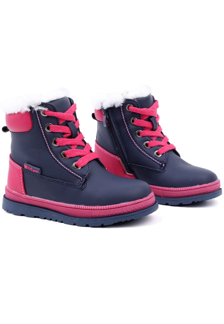 Дівчата -підпродажі, повна підошва. Ніс закруглений. Сильно ізольований зсередини, імітація хутра. Поділяється спереду на плоскі шнурки, блискавка збоку. Зроблено з синтетичного нубука. Ідеально підходить для майбутньої половини року.
