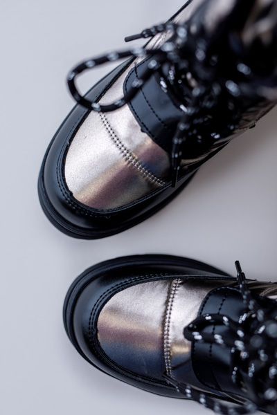 Зроблено з комбінації найвищої якості екологічного шкіряного та текстильного матеріалу. Взуття з металевим кольором.