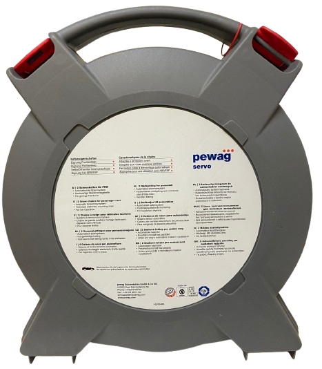 Інноваційна конструкція внутрішнього кріплення кабелю дозволяє йому миттєво розповсюдити його, не дістаючись руками. Корпус натягувача з логотипом Pewag стійкий до подряпин, додатково підкреслюючи унікальність продуктів Pewag на ринку. Для захисту ободів, зовнішні елементи затягування ланцюгів були оснащені пластиковими затискачами з логотипом Pewag.