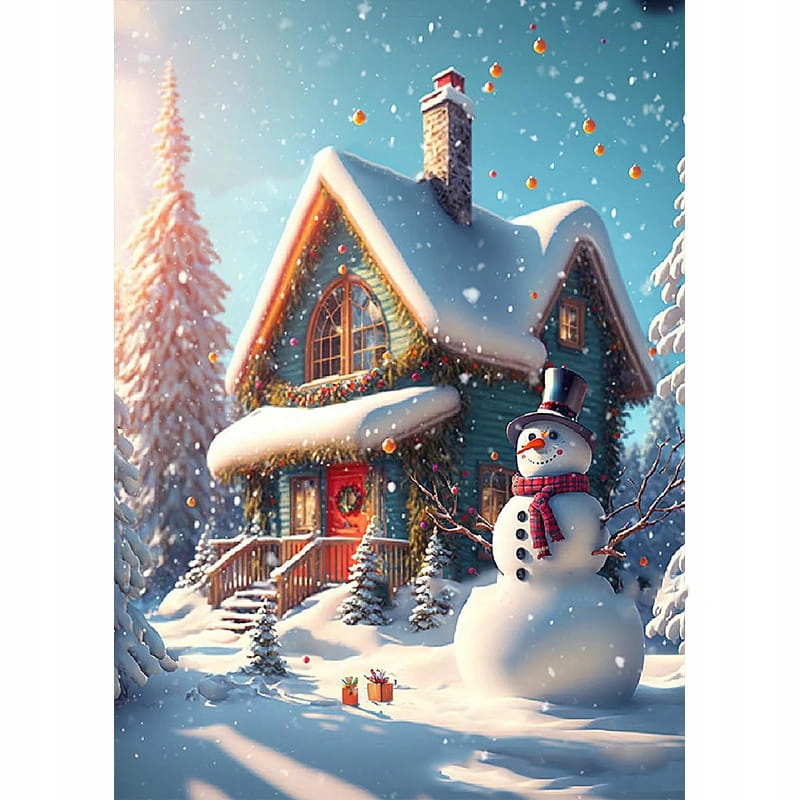 СНІГОВИК АЛМАЗНА ВИШИВКА АЛМАЗНА КАРТИНА 5D 30X40 АЛМАЗОВА МОЗАЇКА РІЗДВО