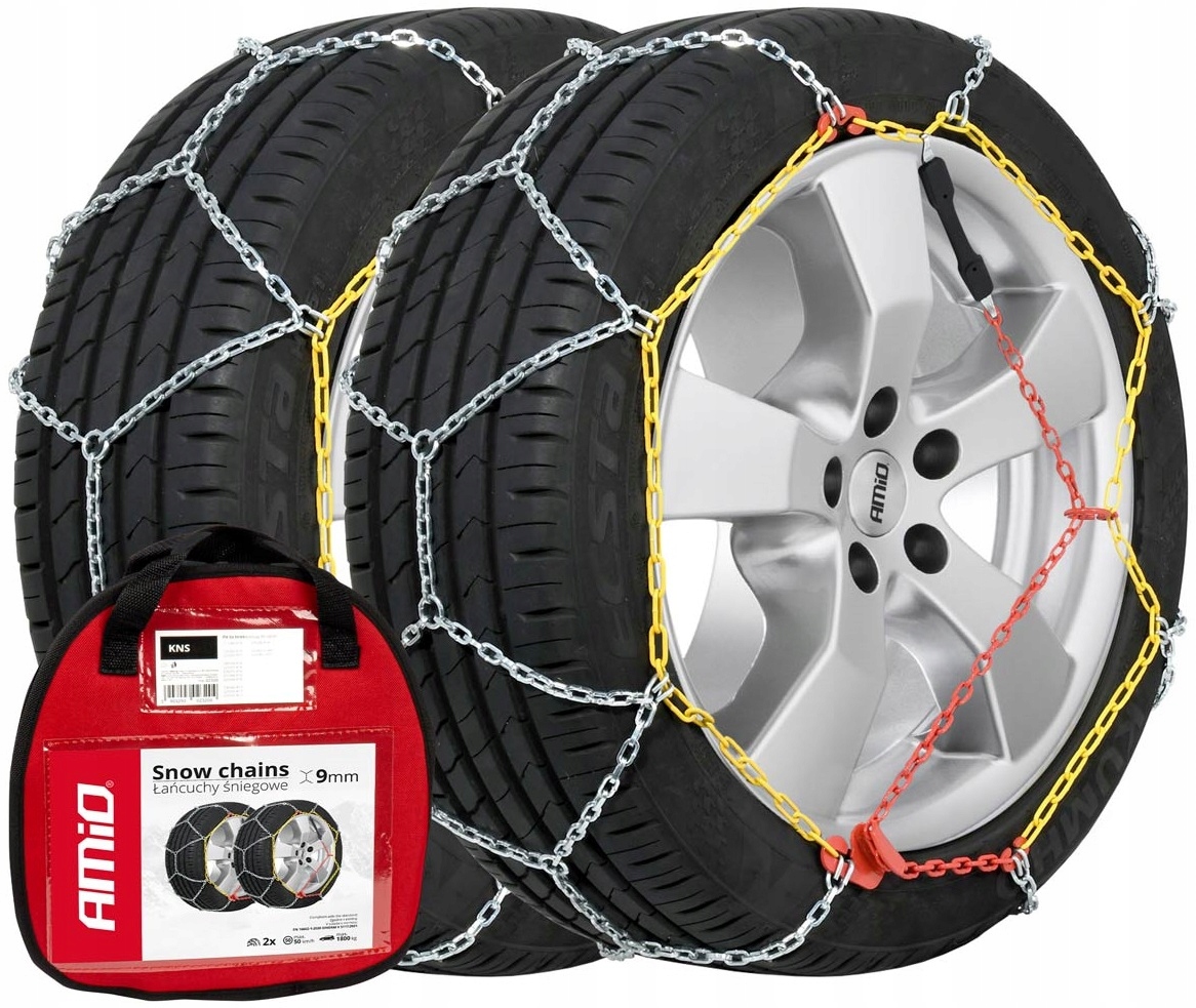- Виготовлені із загартованої сталі з асиметричним ромбічним малюнком ланцюга. Це покращує зчеплення коліс на засніжених або крижаних поверхнях. Міцні ланки висотою 9 мм і квадратним перерізом.