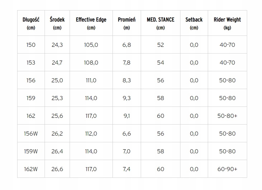 - ВАГА ВЕРШНИКА: 150/40-70; 153/40-70; 156/50-80; 156 Вт/50-80; 159/50-80; 159W/50-80;