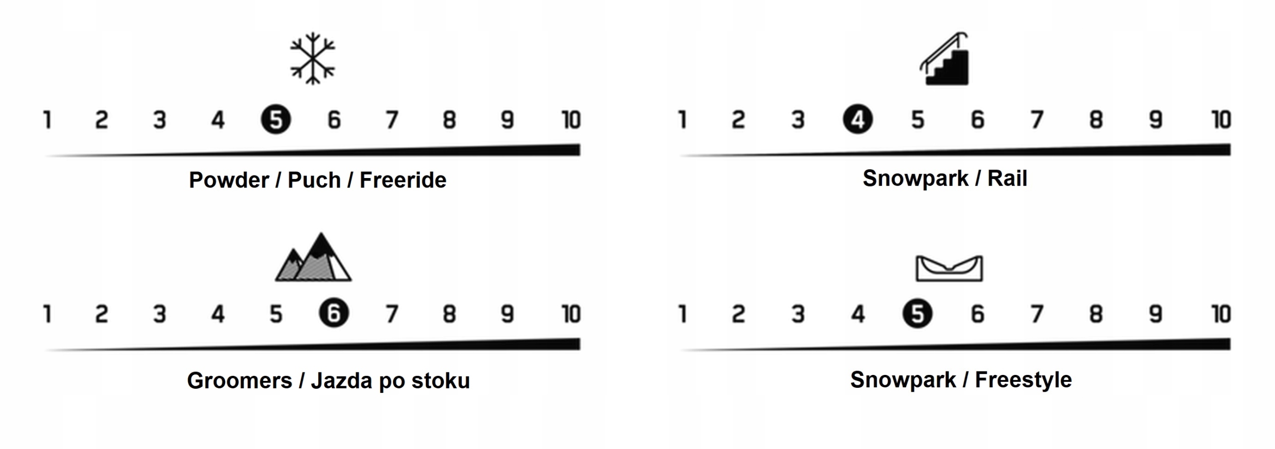 - без уловлення: під час підняття точок метелика над снігом дошка обертається Перш ніж дотримуватися краї без будь -яких ривків. Використання такої невеликої кількості рокера дає ефект підвищеної визначеності під час навчання та більш швидкого прогресу на кожній поверхні. Це рішення зменшує вагу дошки і дозволяє дуже плавно передати потужність, збільшуючи при цьому POP. 90 ° забезпечують плавне водіння, відмінний поп та найбільшу універсальність.