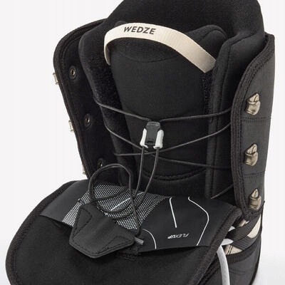 Flex Up (8600870) дозволяє підвищити жорсткість взуття приблизно на 2 точки згинання за шкалою 10. У разі використання Flex Up жорсткість цих черевиків (нових) становить приблизно 5/10. Це пластиковий аксесуар, який вставляється на язичок черевиків для сноуборду Decathlon (починаючи з сезону 2022/23). Спеціальна кишеня дозволяє його правильно розмістити. З часом Flex Up стає цілком зрозумілим: якщо взуття стане м’якшим, ви зможете дати йому друге життя.