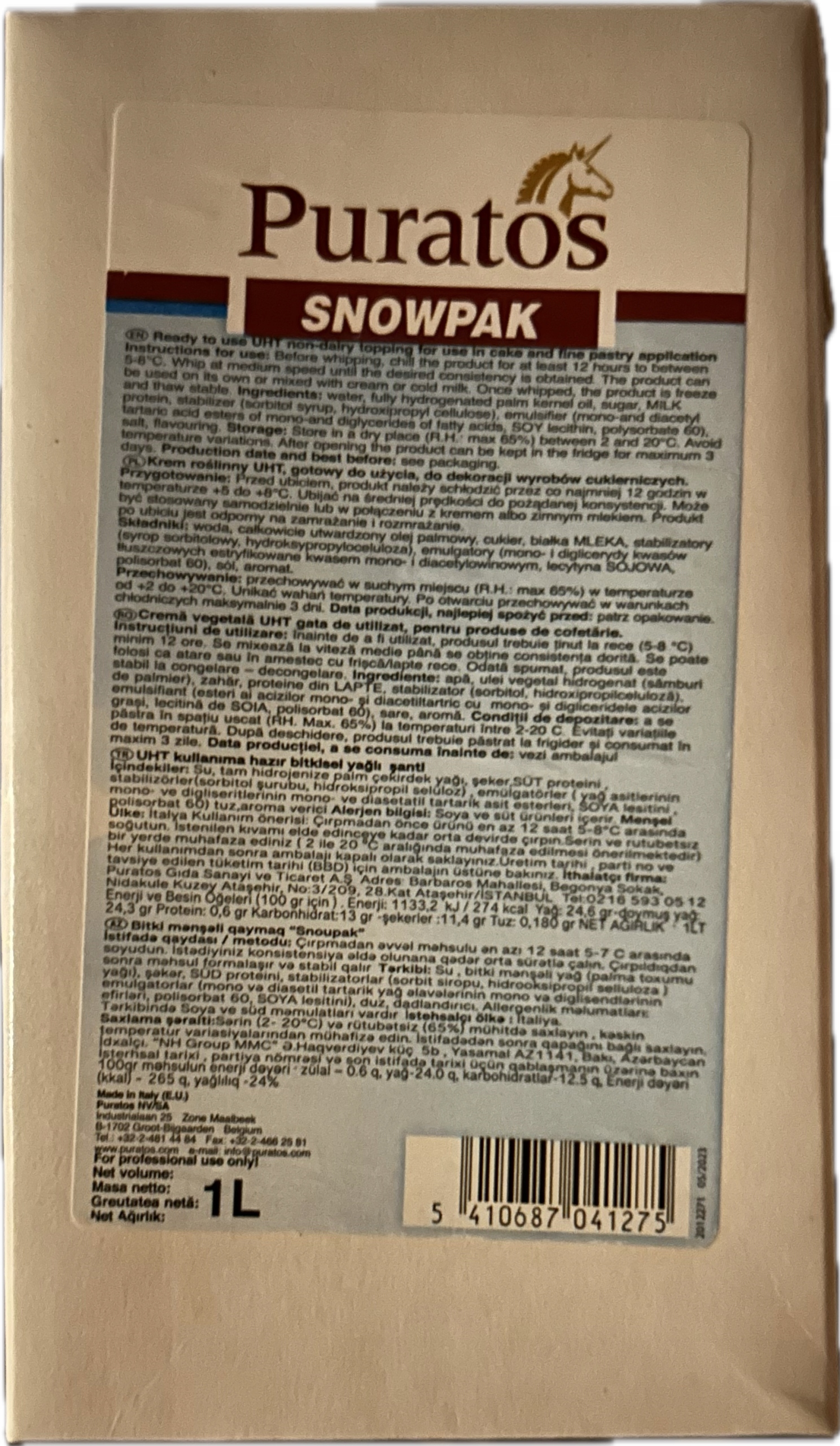 SNOWPAK UHT РОСЛИННИЙ КРЕМ 1 Л PURATOS