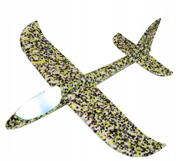 Легкий літак із міцної, стійкої до ударів піни. Аеродинамічна форма покращує здатність ковзати в повітрі, дозволяючи здійснювати далекі та високі польоти. Цей матеріал безпечний для дітей.