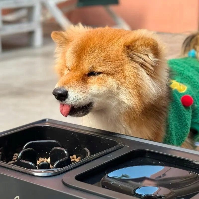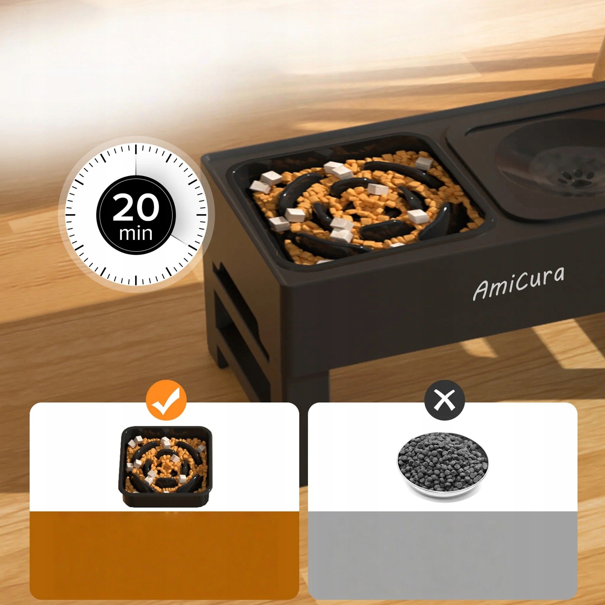 ✨ Double dog bowl with a rack, 4-position height adjustment, slows down food, 2 in 1✨