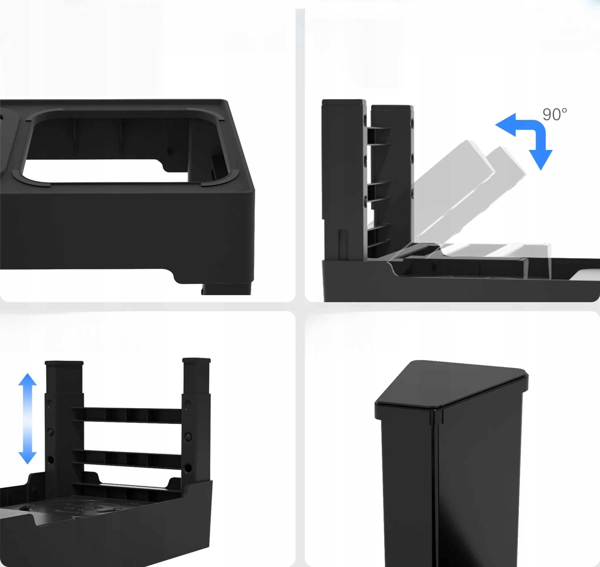 Підставка була розроблена з вашим комфортом. Завдяки інтуїтивно зрозумілою системою складання та розгортання, збірка та розбирання дуже прості і не потребують використання інструментів. Завдяки цьому зберігання та транспортування миски простий і практичний.