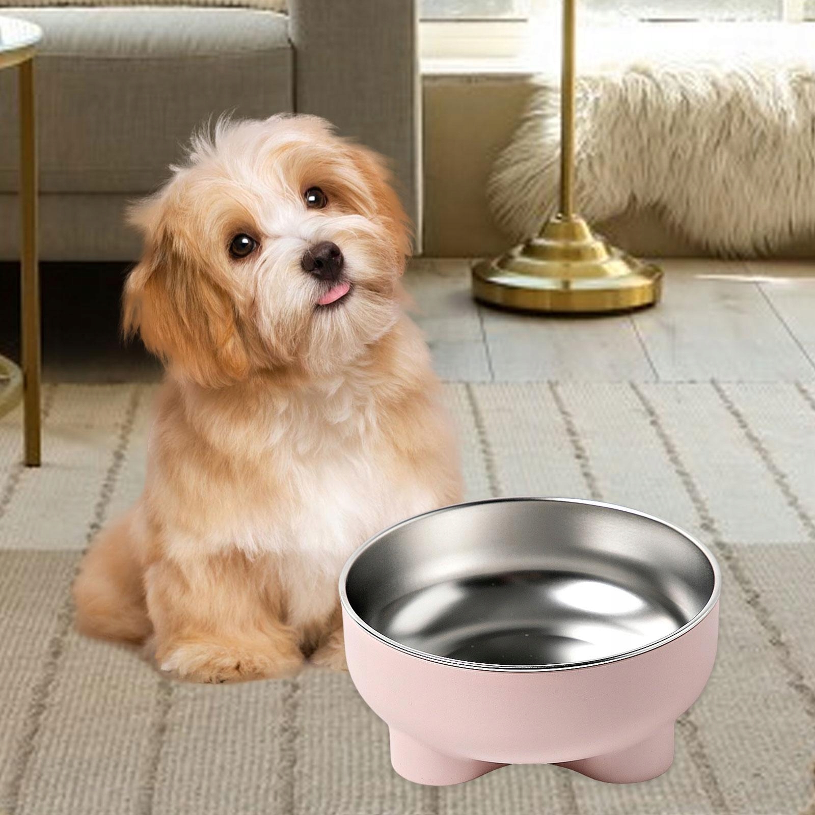 Собака з чаші з кішкою проти ковзання легка нержавіюча сталь простий рожевий