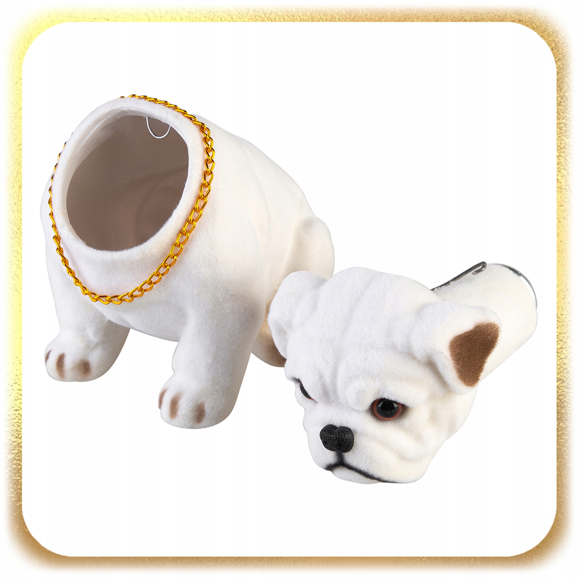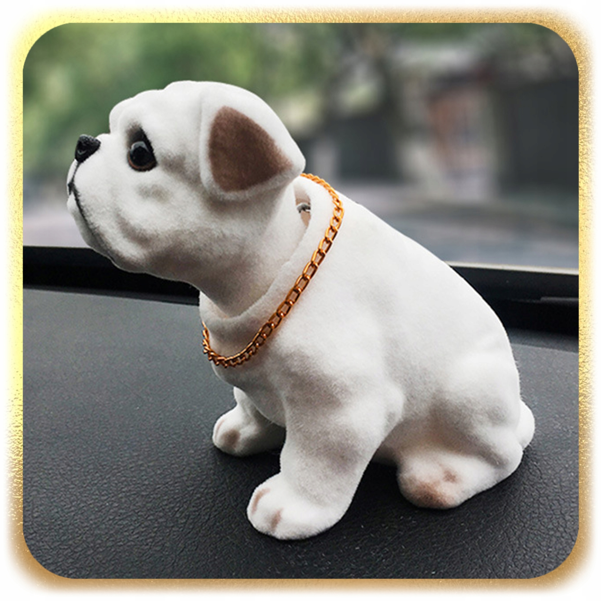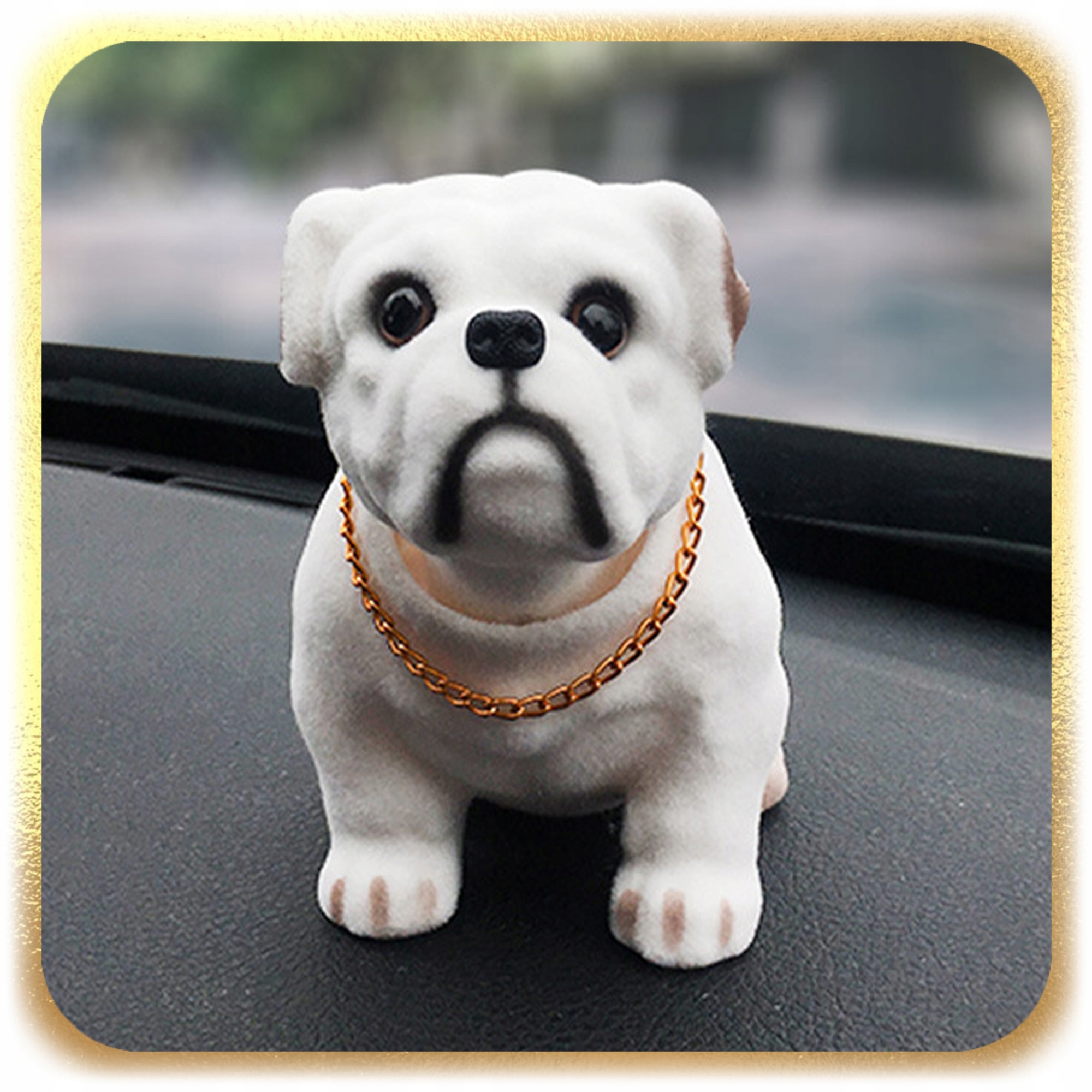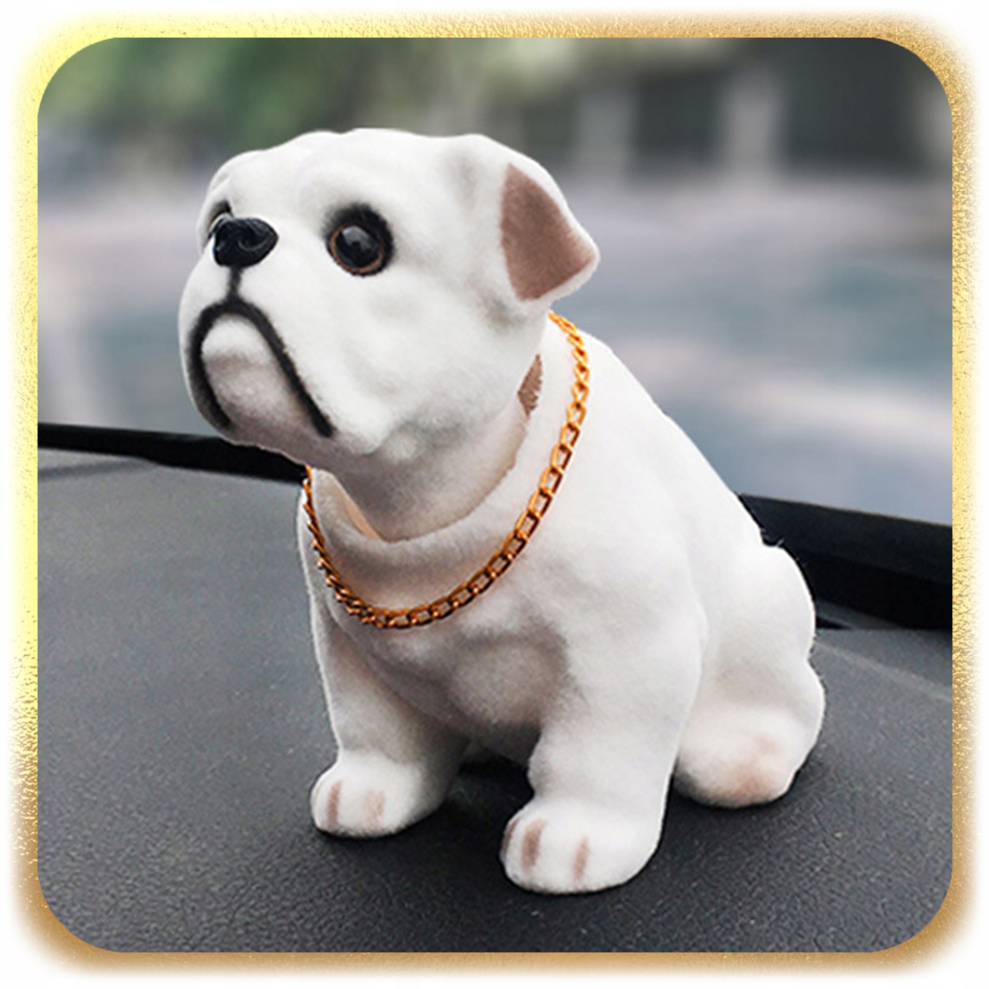 ✨ Ця класична собака є іконою минулого, яку люблять мільйони водіїв. Характерний кивок голови відображає дух тих часів, додаючи шарму салону кожного автомобіля.