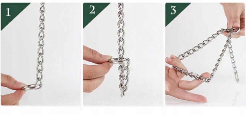 хромований комір ланцюга з довгими клітинами, виготовленими з сталевого дроту, покритого ґрунтовкою та зверху хромом. Такий спосіб підготовки продукту гарантує його довговічність. комір приймається з поведінковим продуктом і використовується для дисципліни собаки і не викликає йому болю. Висока якість продукту означає, що він буде служити протягом багатьох років.