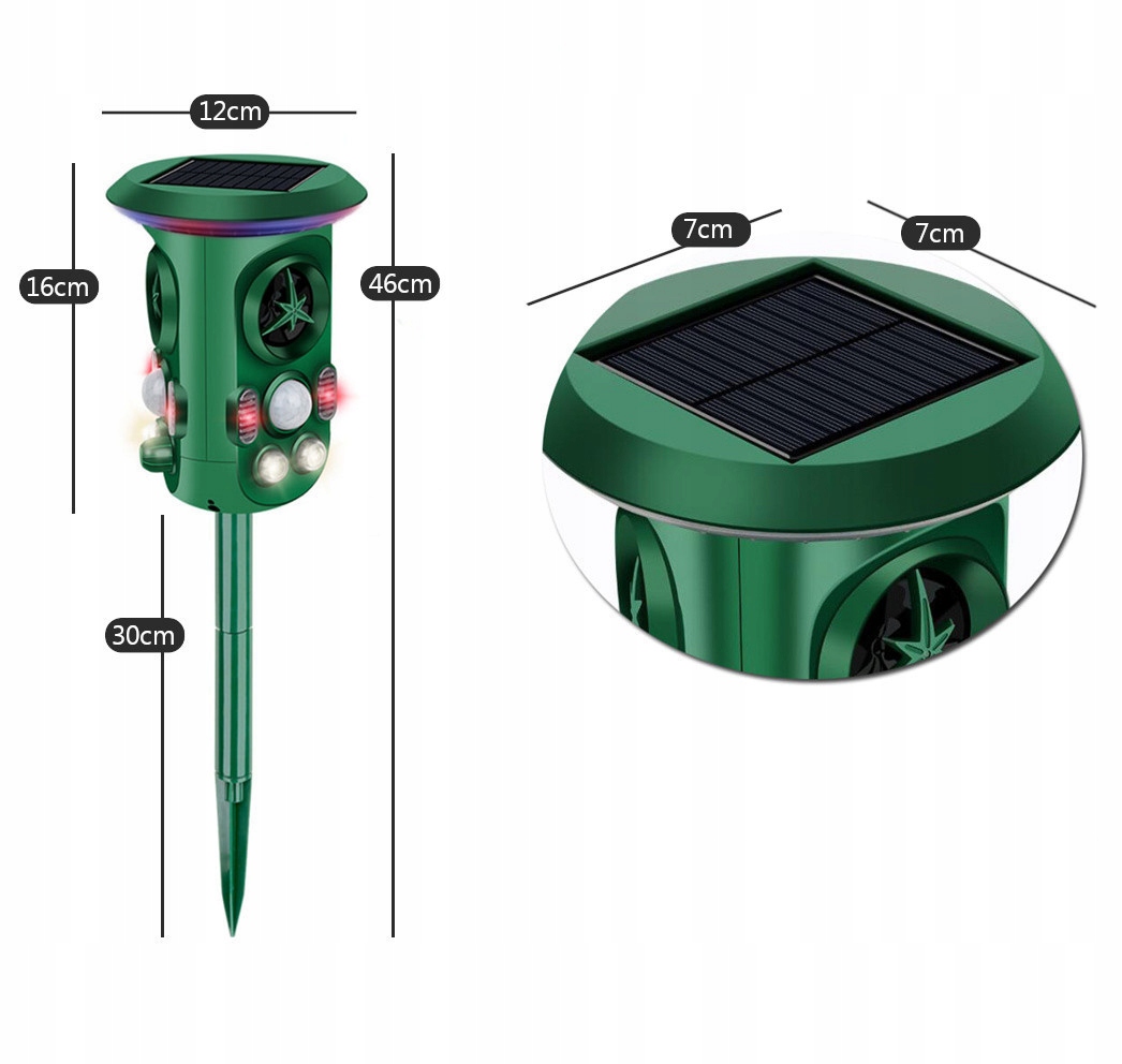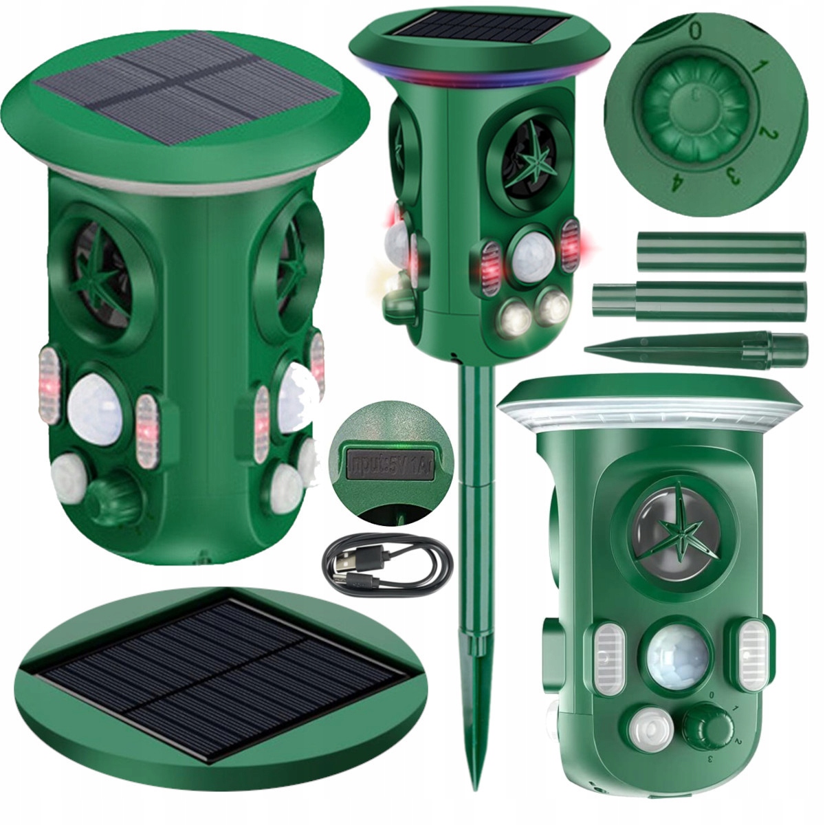 ➡ Легка збірка - можливість стабільної установки в землі . Застосування - Діапазон змінних звукових хвиль забезпечує ефективні дії проти: собак, котів, куномів, птахів, кажанів, гризунів та лісових тварин , захищаючи вашу власність.