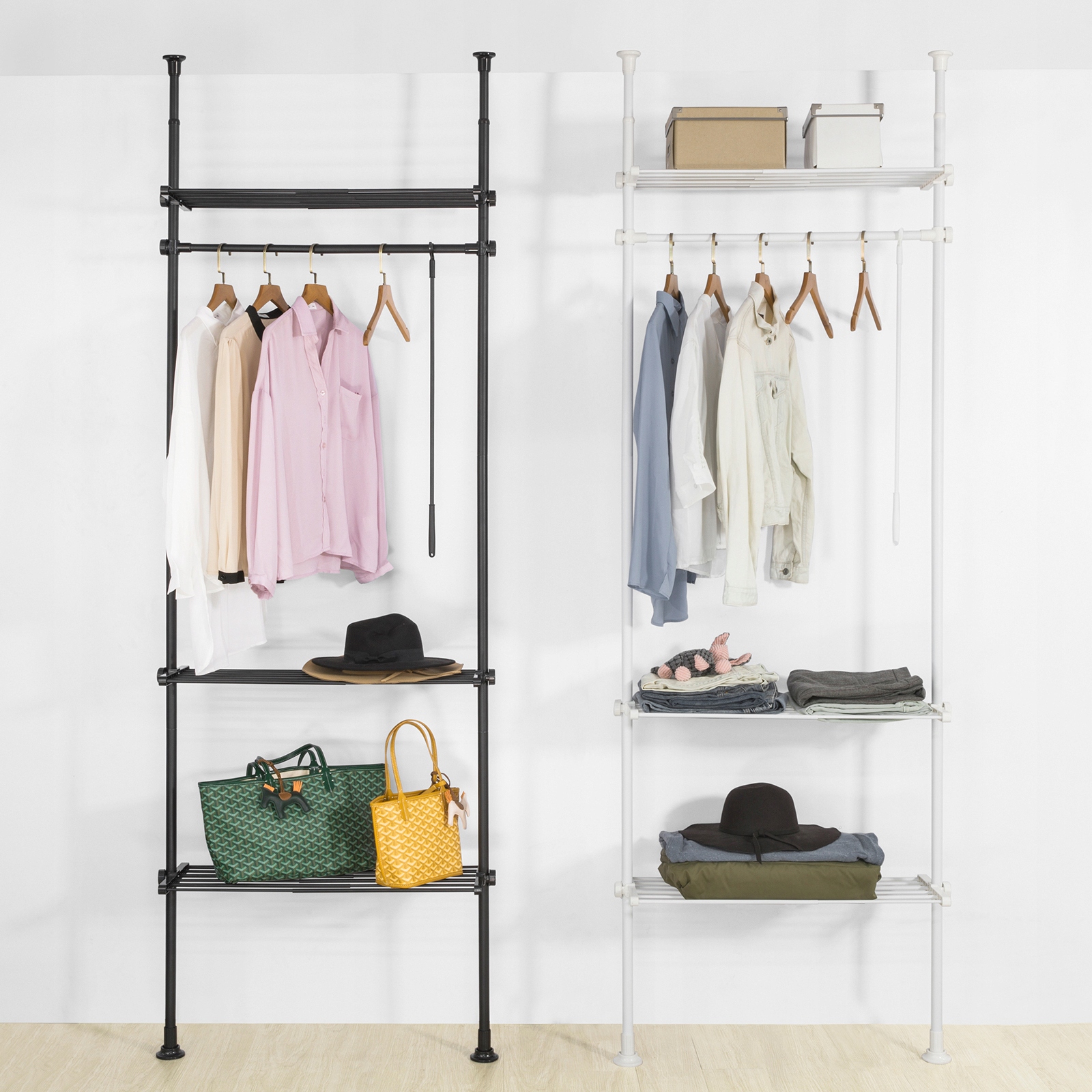 SoBuy Телескопічна гардеробна полиця Вішалка для одягу 2 полиці біла KLS07-W