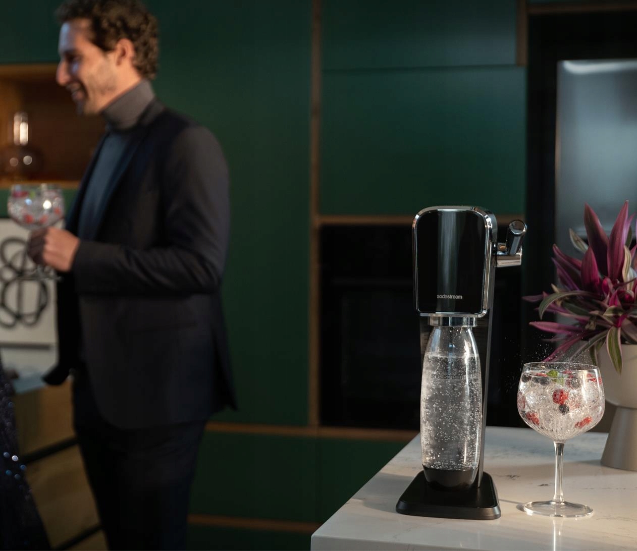 SodaStream ART BLACK — бездротова та надзвичайно практична машина для газованих напоїв. Пристрій являє собою поєднання функціональності та витонченого дизайну. Достатньо лише кількох хвилин, щоб звичайна вода перетворилася на смачний освіжаючий напій із вибраним рівнем карбонізації.