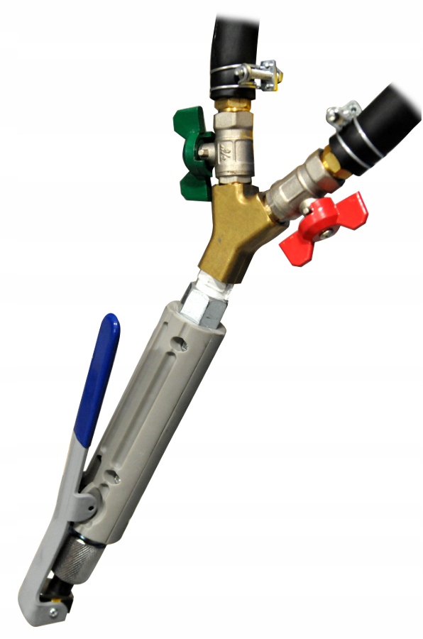 Завдяки двом резервуарам ми можемо швидко перемикати режим роботи з піскоструминної обробки на содову, завдяки клапанам, розташованим на пістолеті.