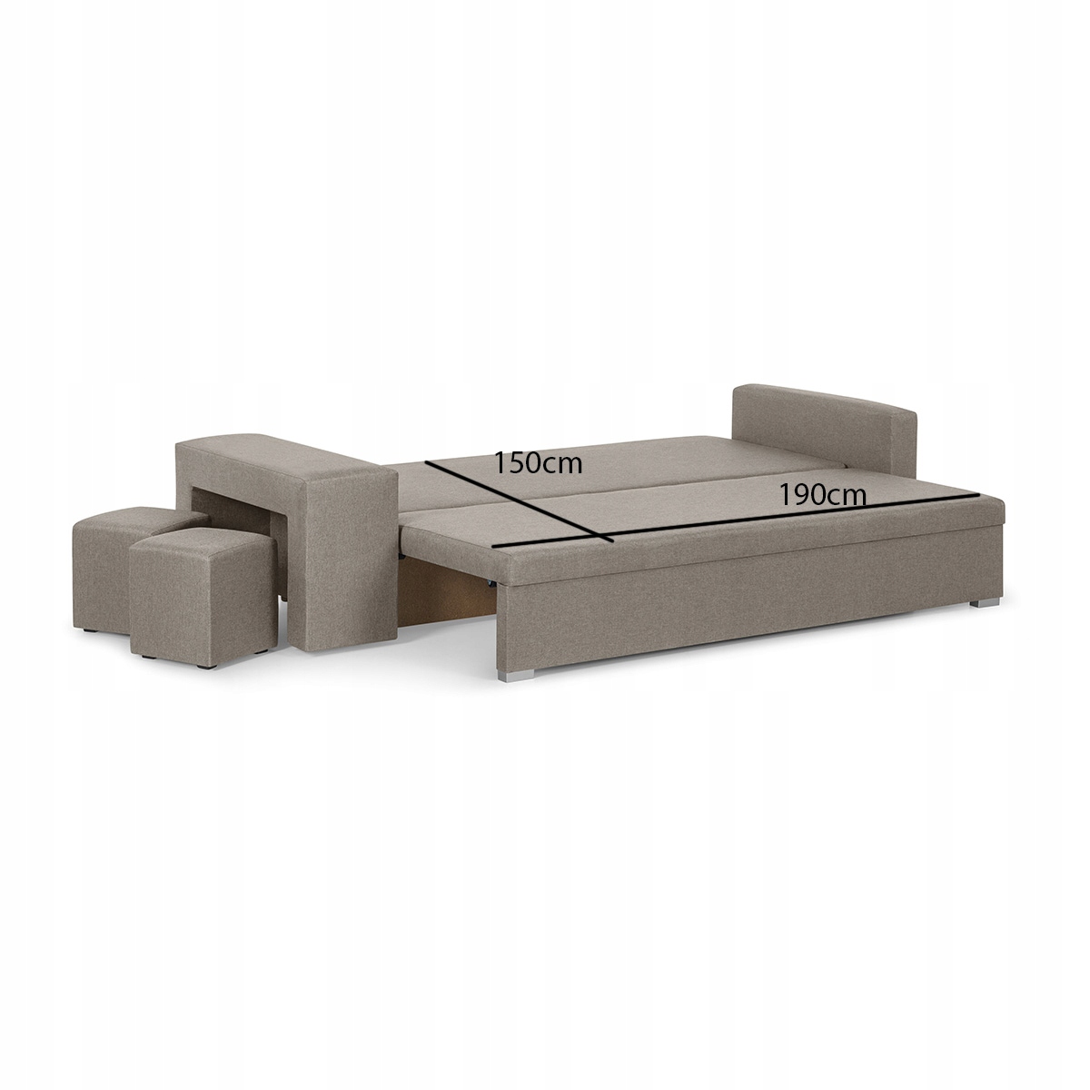 Диван має інтуїтивно зрозумілу систему розкладання, завдяки якій ви можете за кілька хвилин перетворити його на ліжко. Вся поверхня для сну виготовлена з високоякісного поролону, який покращує комфорт сну. Під сидінням є містке відділення для постільної білизни, куди можна помістити як постільну білизну, так і ковдри та подушки.