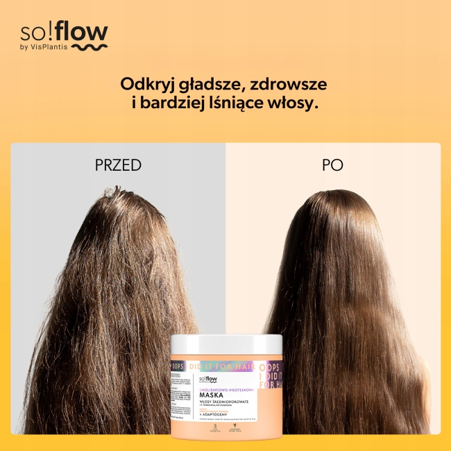 Маска so!flow від Vis Plantis сприяє регенерації волосся, робить його еластичним і зміцнює. Олія кісточок сливи чудово доглядає за сухим волоссям, забезпечуючи його живлення. Олія авокадо запечатує кутикулу волосся, розгладжує пасма, сквалан і олія макадамії надають волоссю еластичність і здоровий вигляд. До складу також входить заспокійливий пантенол.