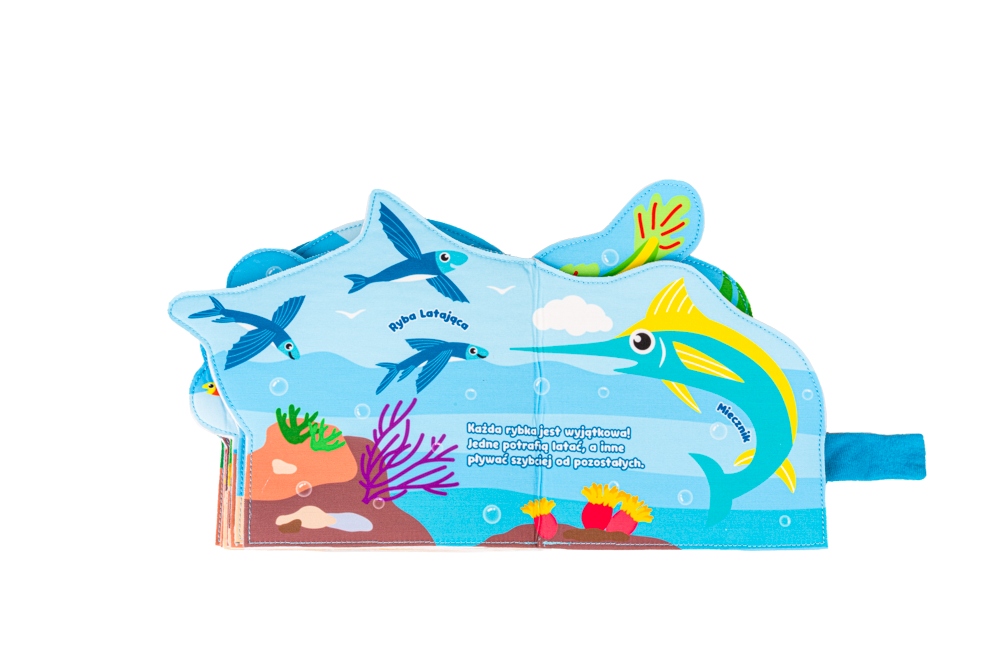 Під поверхнею води є барвистий світ повний дивовижні створення! Книга проведе вас по його закутках, розповість про риб і назве їх. Нерівні краї роблять гру більш привабливою. Книжка застібається на липучку.