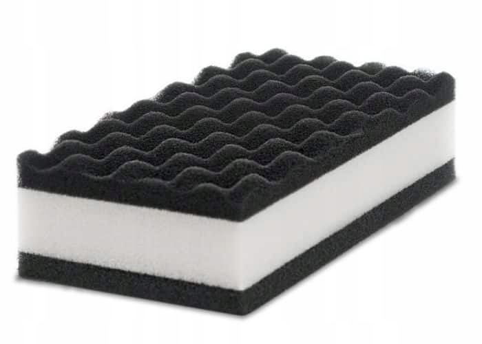 Спеціальна тришарова губка, призначена для деталізації. Надзвичайно делікатний продукт, який повністю відображає якість лінії QJUSTU. Верхній шар з високою проникністю добре вбирає миючий засіб. Щільна структура високоміцного середнього шару пропускає повітря та дозволяє створювати піну високої консистенції. Нижній шар губки не пропускає рідину, тому піна виходить тільки з верхнього шару губки.