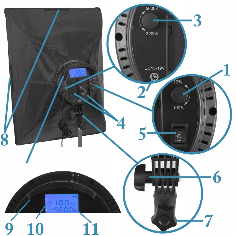 Лампа забезпечує тривалу безвідмовну роботу та чудову природну передачу кольору, оскільки колірну температуру лампи можна встановити на 5600K, крім того, ми також можна розігріти раму, встановивши температуру до3200Kза допомогою зручної ручки.