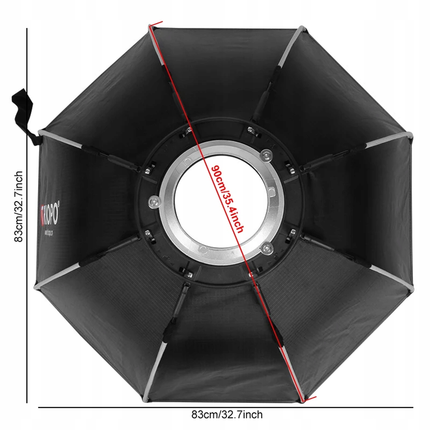 Це 90-Центметр восьмигранна софтбокса з кріпленням Боуенса -чудовий вибір для фотографів та режисерів, які не розпізнають компроміси. покриття з високим коефіцієнтом відбиття та двома дифузаторами ви отримуєте рівномірно розподілене і м'яке світло, з вірною кольоровою температурою.