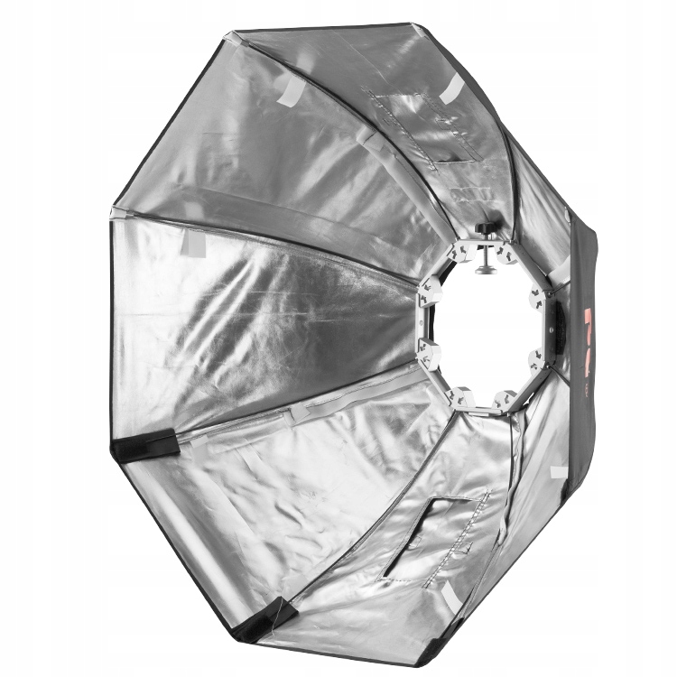 Softbox Falcon MRH 90 CM OCTA, присвячений для використання з фари галогени RDG (так -отвори рудого). Модифікатор оснащений спеціальним адаптером складання, який за допомогою гвинтових затискачів прикріплюється до лампи (ворота слід видалити заздалегідь). Складання модифікатора сприяє спеціальними кишенями на липучках для кінців брусків. Обшивка софтбоксу виготовлена з міцного та високотемпературного стійкого матеріалу. Безпечна вентиляція всередині модифікатора забезпечується двома отворами, розміщеними з двох боків обшивки.