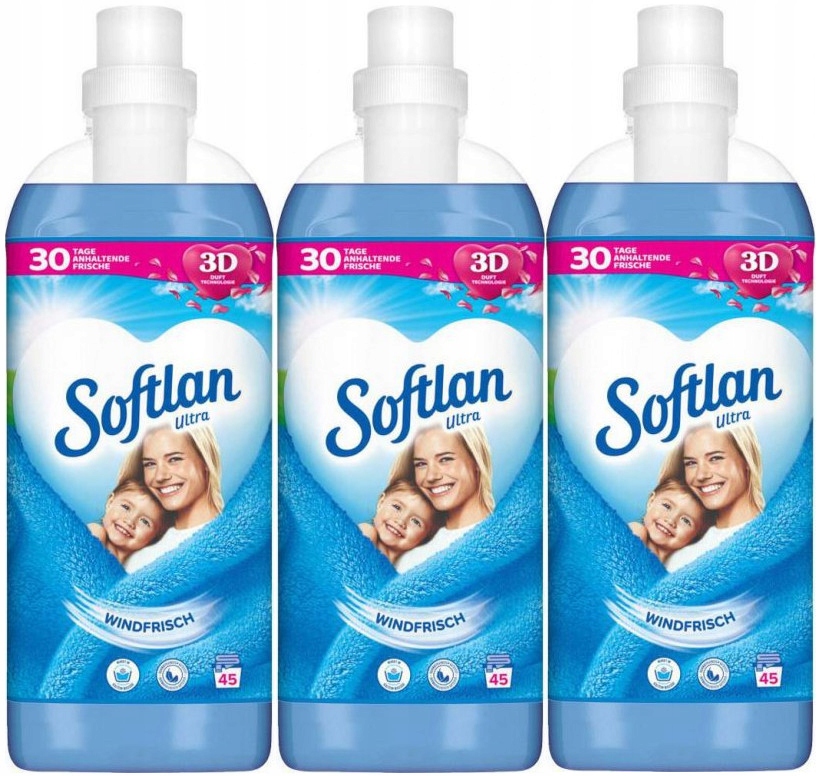 Softlan 3D Ultra Windfrisch - Fresh Breeze Blue Fabric Softener Concentrate Set 3x45p DE