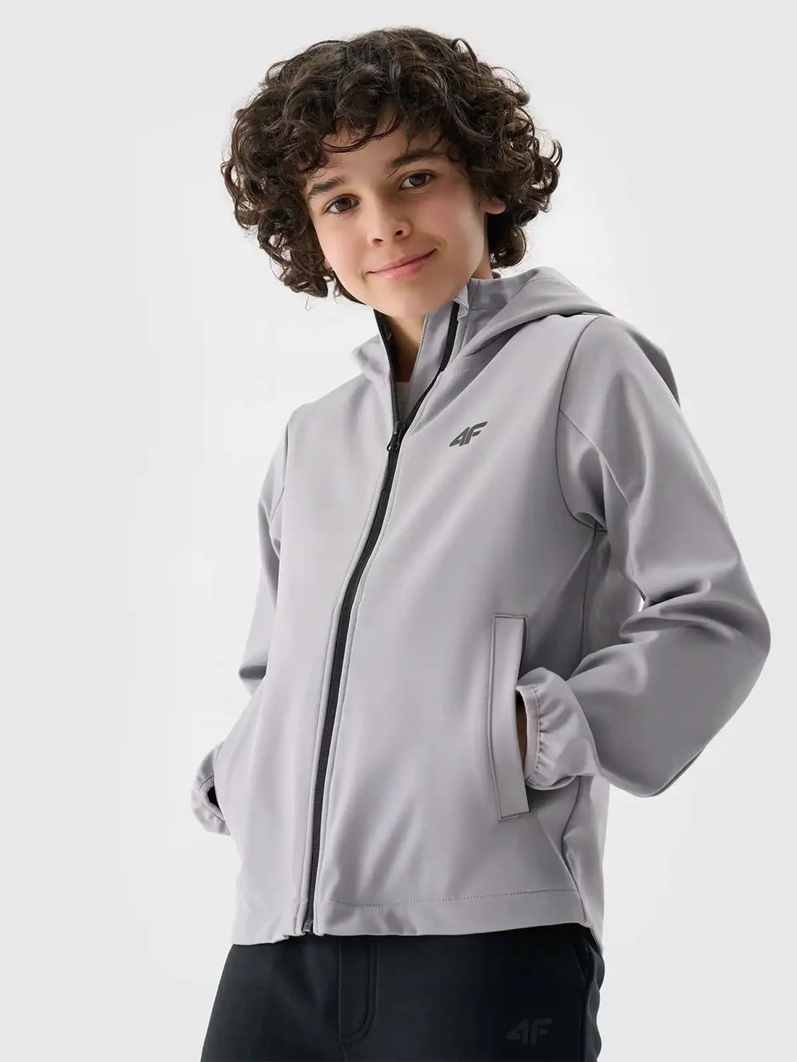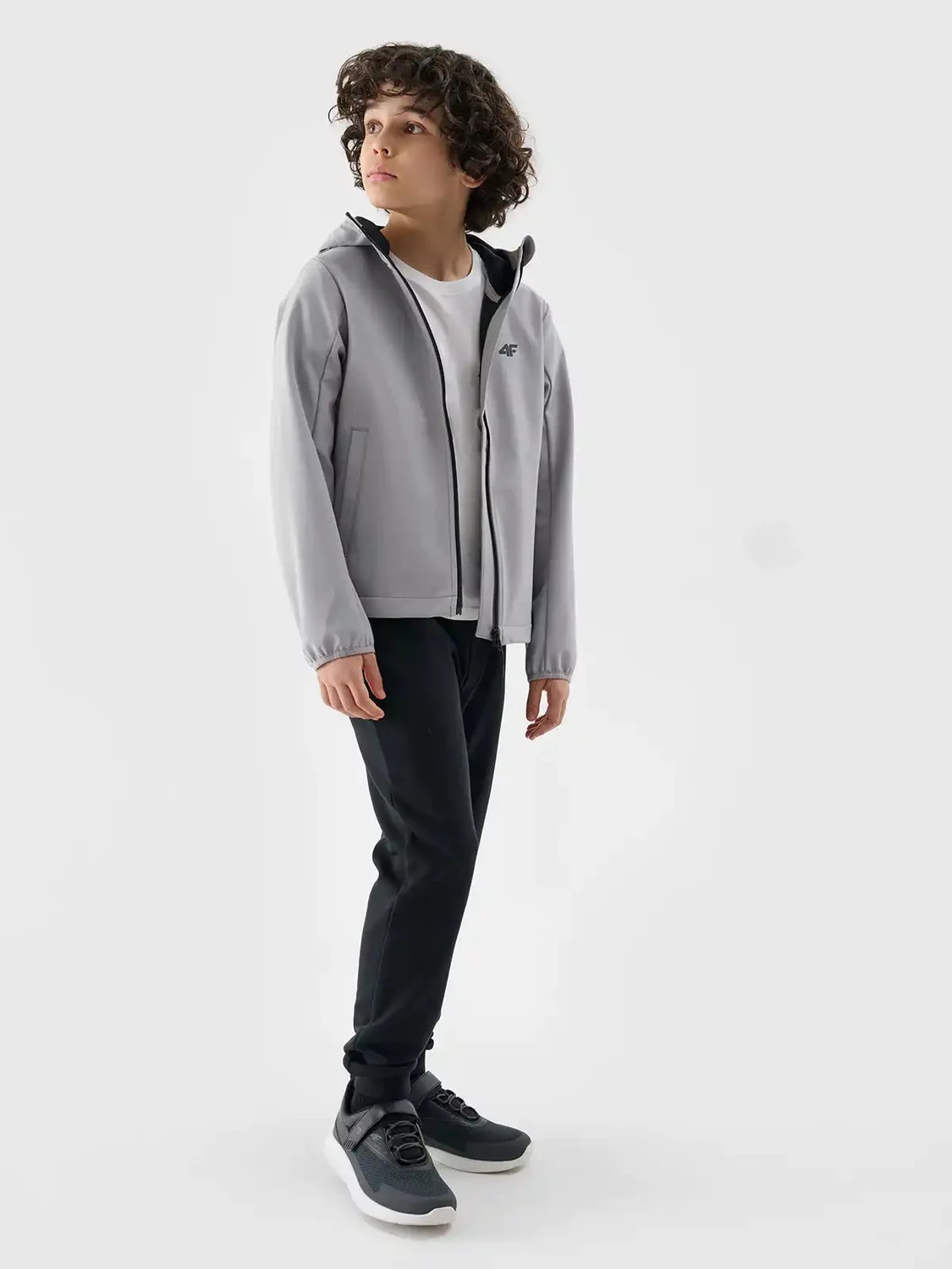 Куртка софтшелл для хлопчика від 4F — ідеальне рішення для мінливих погодних умов. Виготовлений з легкого матеріалу, який поєднує поліестер і еластан, забезпечує комфорт і свободу рухів. Завдяки використанню мембрани Neo Dry куртка ефективно захищає від невеликих опадів і вітру, а гідрофобне просочення додатково захищає зовнішній шар. Вбудований капюшон і захист для підборіддя захищають від холоду, а еластичні манжети забезпечують ідеальну посадку. Дві бічні кишені - практичне місце для дрібниць, а світловідбиваючі елементи забезпечують безпеку вночі. Гладкий, простий крій і логотип додають стилю будь-якому юному досліднику.