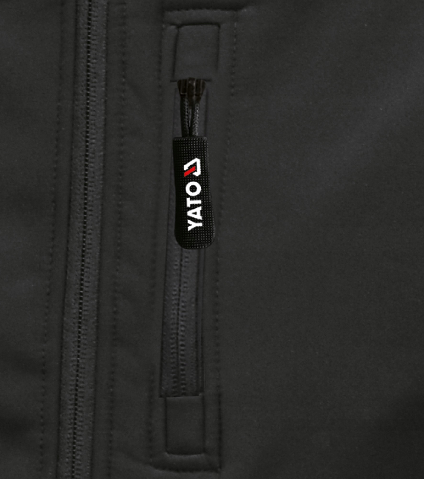 Куртка з софтшелл з трьома кріпленими водонепроникною блискавкою з кишенями та знімним капюшоном.