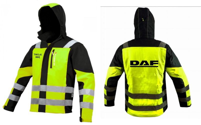 SOFTSHELL SCANIA КУРТКА З КАПЮШОНОМ ВАШ СВІТЛОВІДБИВАЮЧИЙ ПРИНТ ПОПЕРЕДЖУВАЛЬНИЙ ТІР
