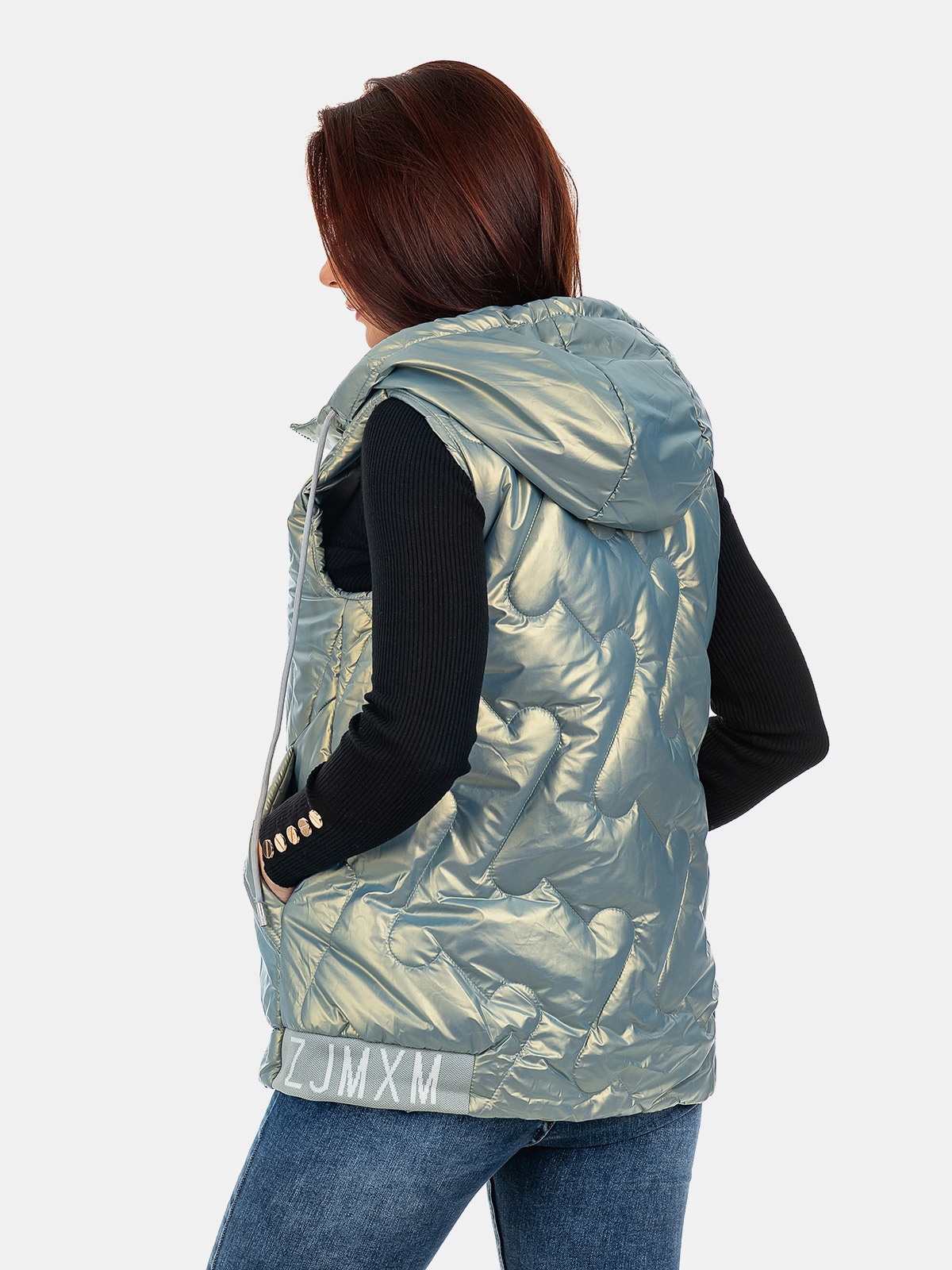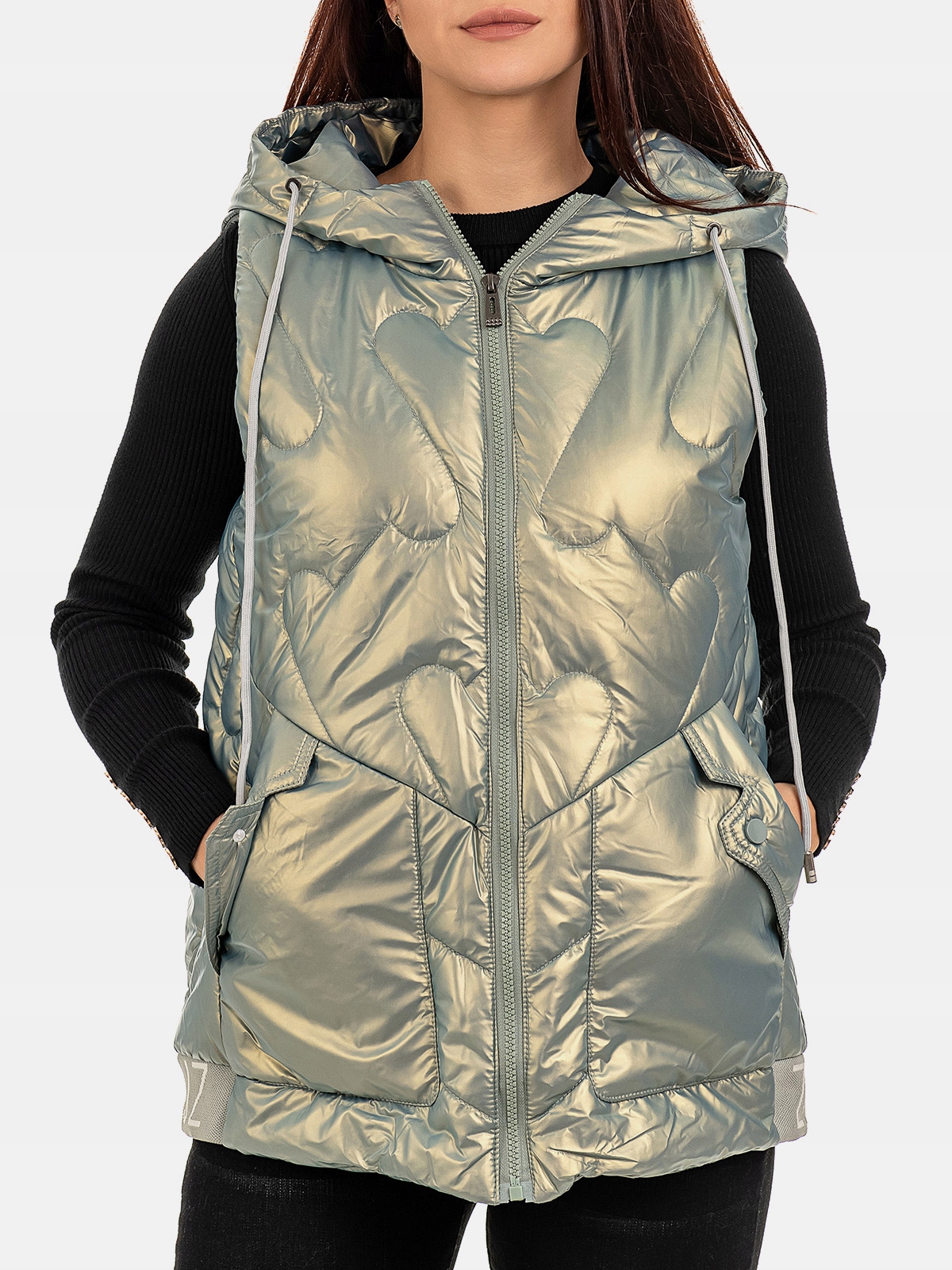 - жилетка трохи подовженого крою з блискучої стьобаної тканини