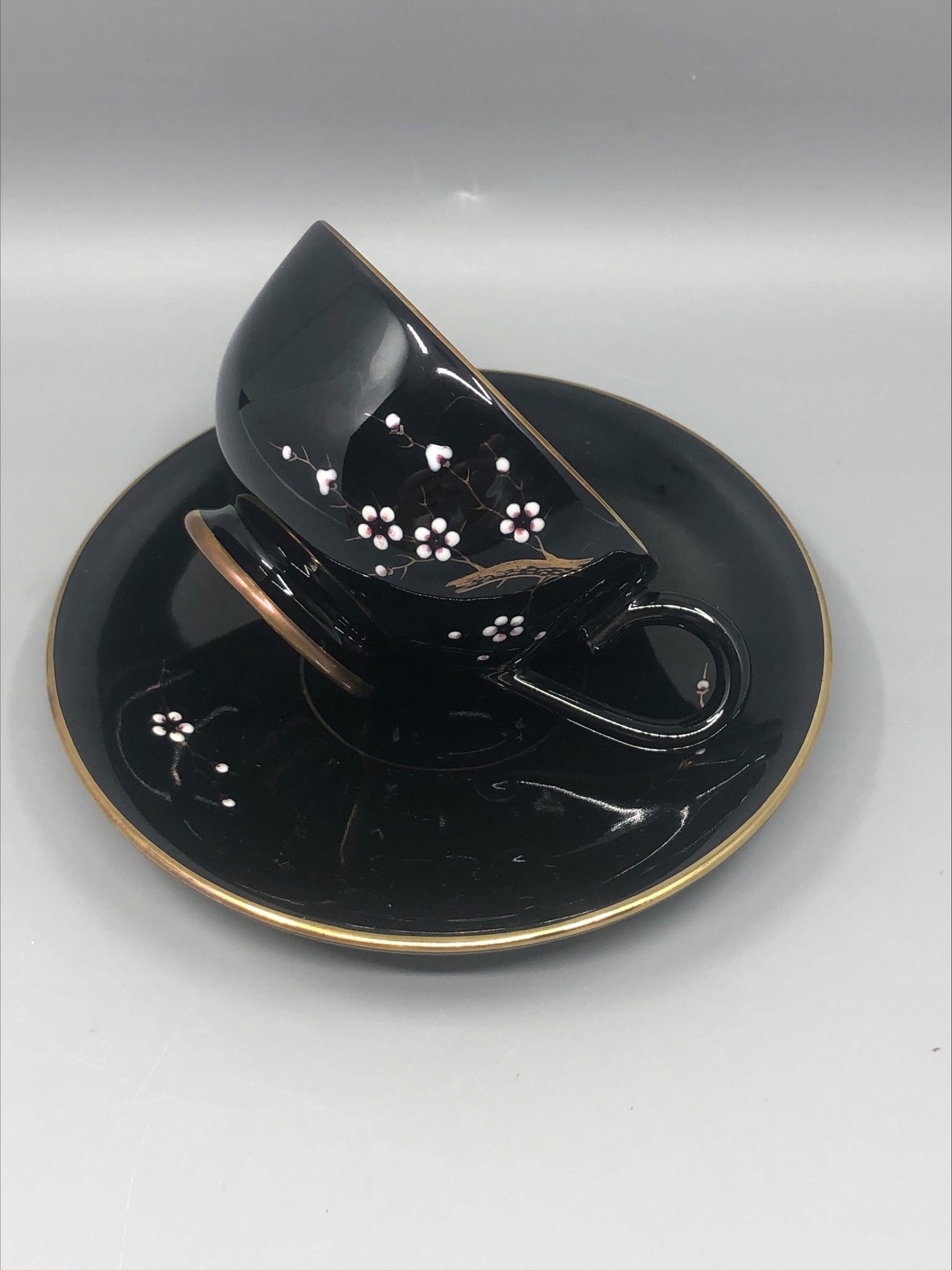 moczka в кобальтовому живописному руці -відомії білими квітами та позолотою.