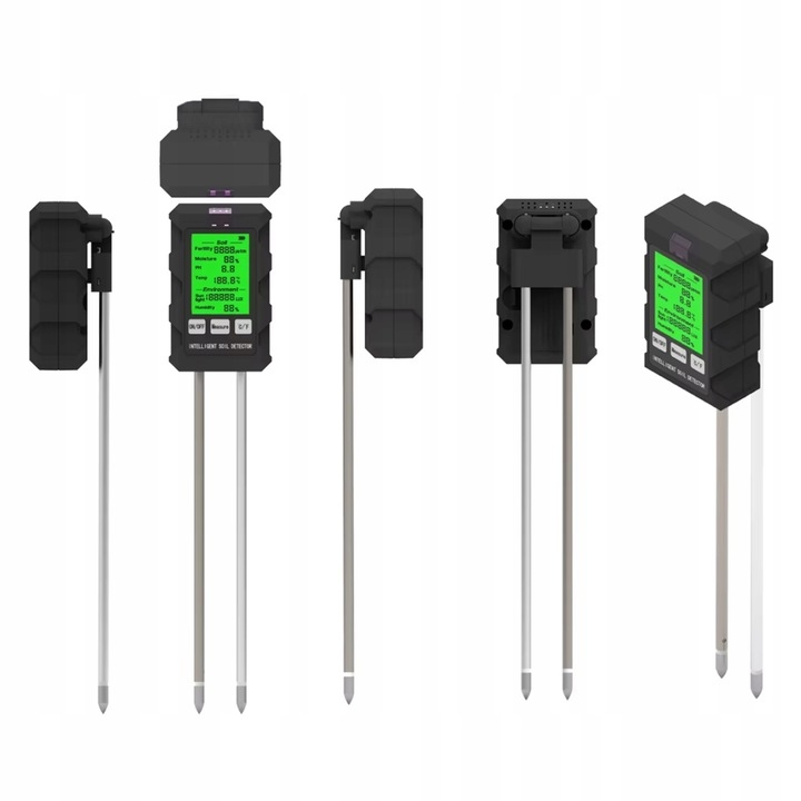 Пристрій дозволяє одночасно контролювати шість параметрів має вирішальне значення для росту. рослини. Поворотна панель і екран з підсвічуванням забезпечують легке читання результатів незалежно від умов освітлення. Просто вставте зонд у землю, щоб за кілька секунд дізнатися поточний стан ґрунту.