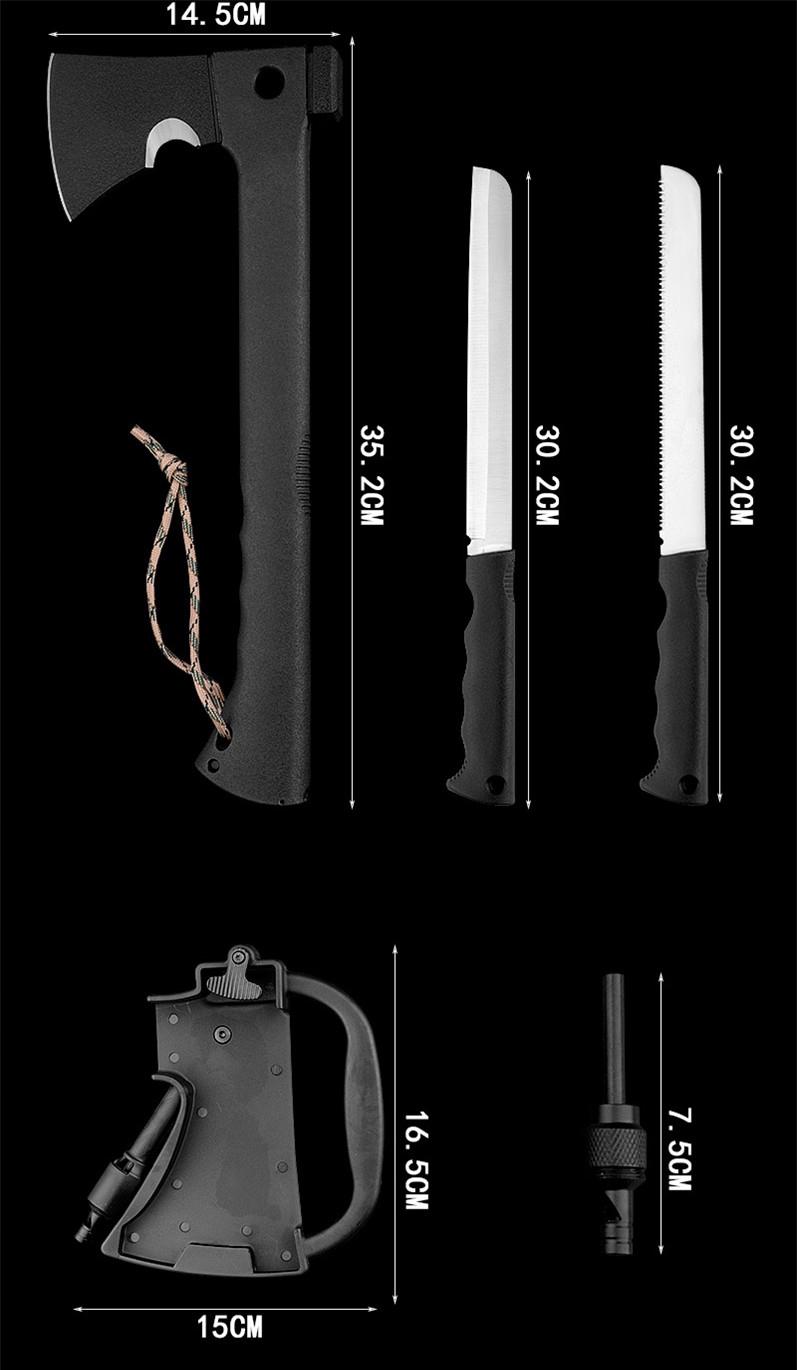 - Сокира та лезо пилки виготовлені з міцної нержавіючої сталі;