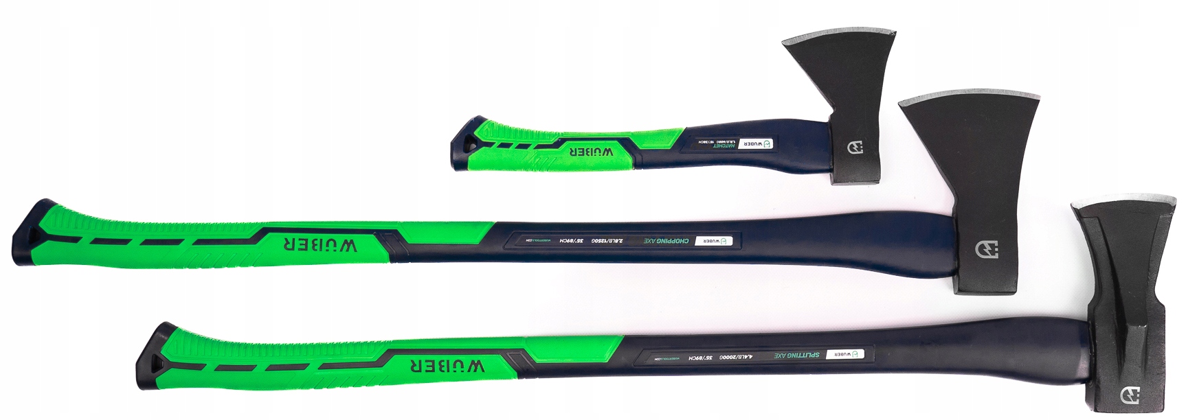 Сокири Wuber, розроблені з думкою про користувачів, мають ергономічний дизайн із прогумованою ручкою для зручного захоплення та контролю під час роботи, зменшуючи втому рук.