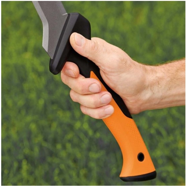 - Лезо довжиною 46 см ідеально підходить для проріджування густих кущів і зрізання коренів, гілок та інших елементів у дворі та саду