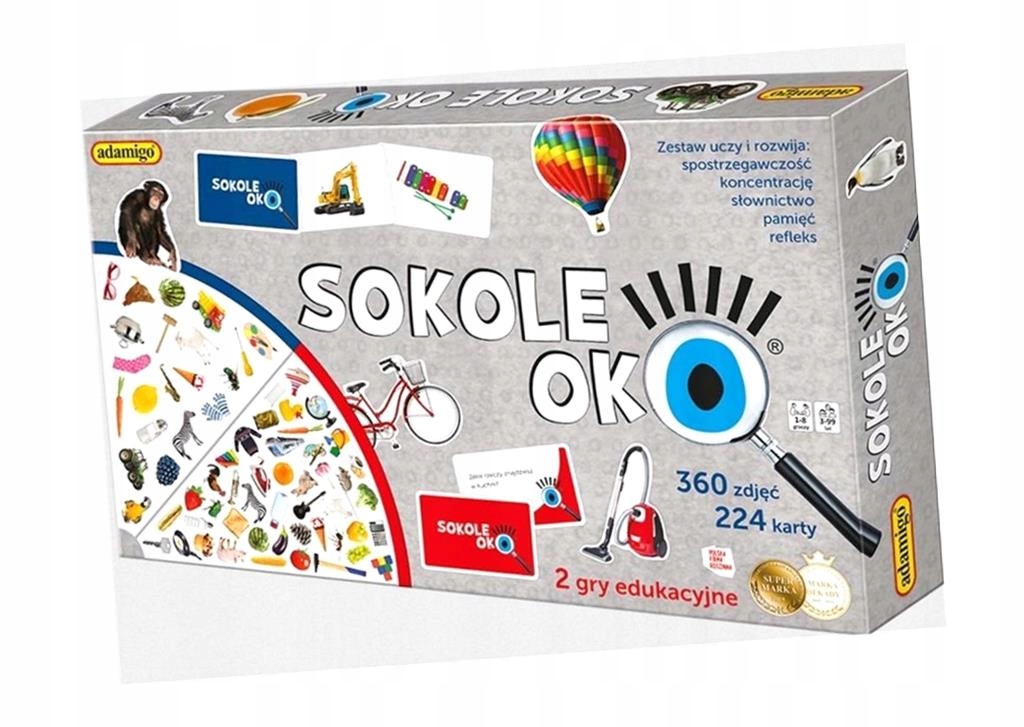 Гра призначена як для дітей, так і для дорослих, а правила можна адаптувати до віку та кількості учасників. Ви можете грати великою групою або поодинці! Hawkeye ідеально підходить для дому, школи, дитячого садка та клубу старших. o збагачує словниковий запас o тренує пам'ять o тренує рефлекси та концентрацію o розвиває слухо-зоровий аналіз o стимулює когнітивний розвиток o викликає позитивні емоції o забезпечує чудове задоволення на вечірці! У гру входять: o двостороння дошка з двома рівнями складності o 168 карток із зображеннями для пошуку o 56 карток із завданнями o жетони o інструкції