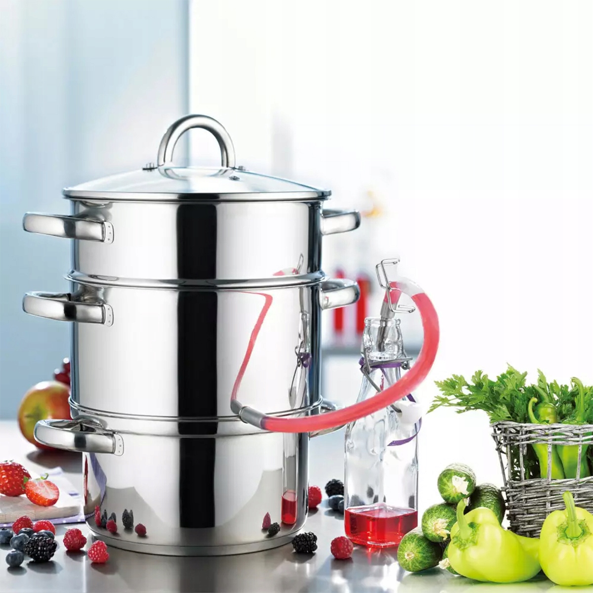 Соковижималка дає вам можливість легко приготувати домашній сік із ваших улюблених фруктів чи овочів. Ми отримуємо пастеризований сік, тому можемо легко зберігати його довше. Соковижималка Kinghoff 8л дозволить вам приготувати смачний сік максимум за 2 години. Бренд Kinghoff, виробник ексклюзивного посуду, гарантує найвищу якість продукції. Ця модель соковижималки також адаптована для використання на індукційних плитах. Потрійне акутермічне дно забезпечить тривале задоволення від продукту. Соковижималка виготовлена з нержавіючої сталі 18/10.