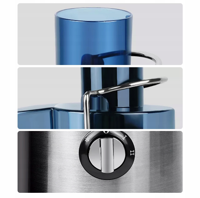 - Є 2 регульовані швидкості, які дозволяють вибрати відповідну швидкість відповідно до м’якості інгредієнтів, Ⅰ низька швидкість підходить для м’яких фруктів, таких як апельсини та помідори, Ⅱ висока швидкість підходить для твердих інгредієнтів, таких як яблука, селера, морква тощо.